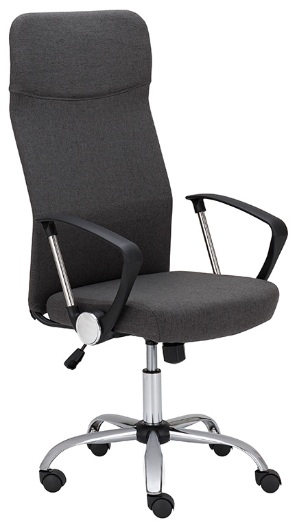 Oblíbená řada kancelářských židlí s područkami a houpací mechanikou, kterou lze aretovat ve vzpřímené poloze a nastavit tuhost houpání. Celočalouněná verze v elegantní tmavě šedé látce ze 100 % polyesteru pro nenáročné kancelářské pracovní prostředí, domácí pracovny nebo menší meetingové místnosti.