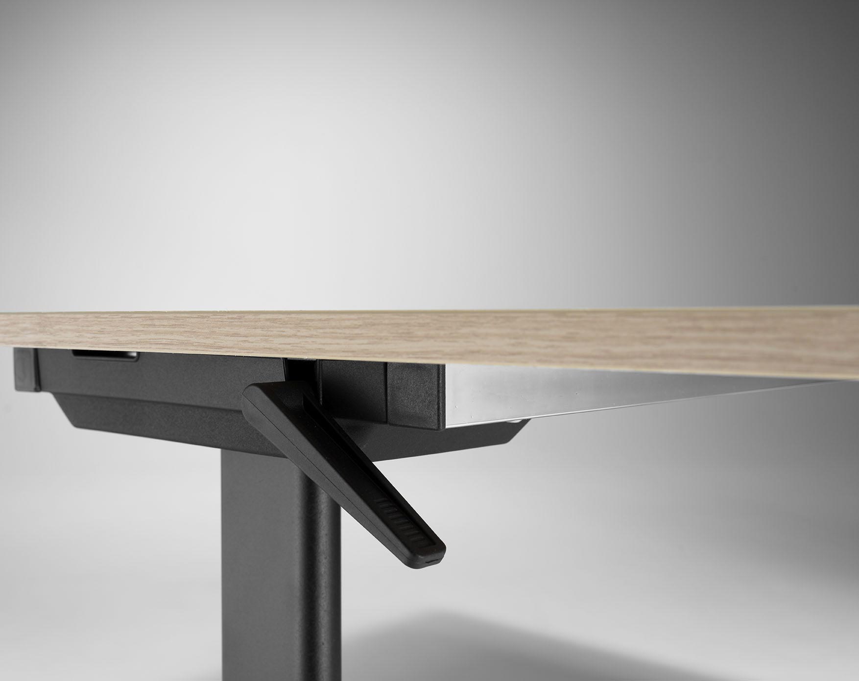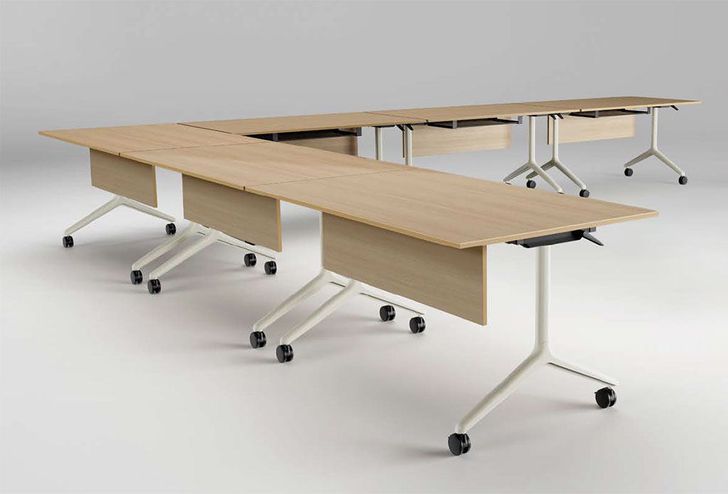 Stoly jsou k dispozici ve třech velikostech a se třemi typy podnoží – Duo, Pro a Classic – v různých barevných provedeních. Pomocí jednoduchého zámkového systému lze stoly snadno a bezpečně spojovat do větších sestav. Desku stolu lze zvolit z nabídky sedmi odolných laminátových dekorů, naklápěcí mechanismus s nohami je kompatibilní s jakoukoli standardní stolovou deskou na trhu.