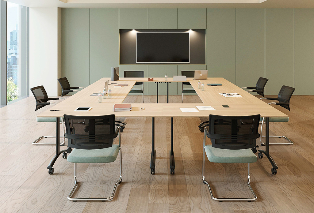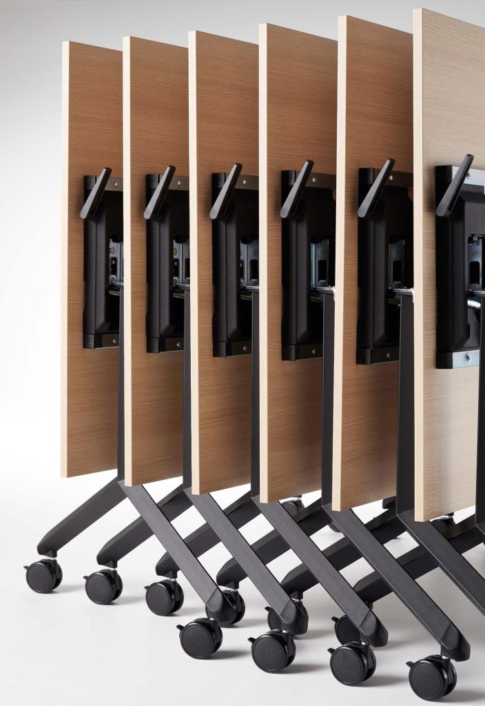 Sklápěcí stůl s inovativním patentovaným systémem naklápění horní části nabízí skutečnou přidanou hodnotu, zejména v konferenčních místnostech, školicích prostorách, seminárních sálech či multifunkčních kancelářích. Pohyblivé kovové nohy a kolečka s brzdou umožňují snadné skladování, v případě potřeby je stůl okamžitě připraven k použití. Naklápěcí mechanismus je snadno ovladatelný jednou osobou.