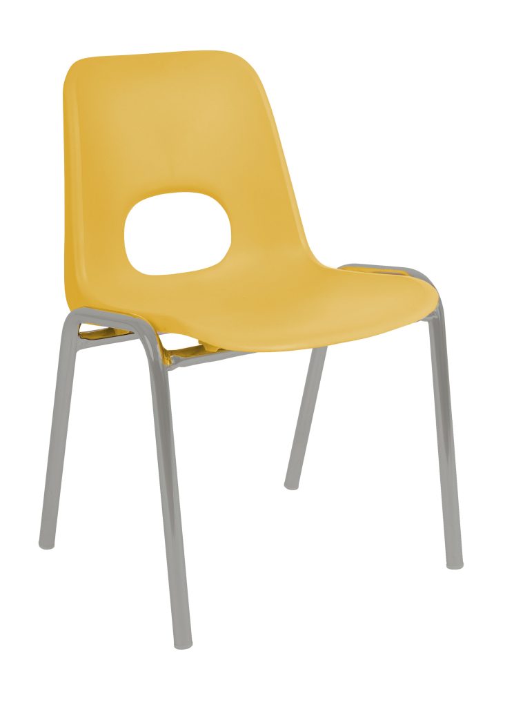 Židlička HELENE  je vhodná do mateřských škol a kombinuje praktický design s odolnými materiály. Skořepina je vyrobena z pevného žlutého plastu a konstrukce je v elegantní šedé barvě RAL 9006. Židlička je stohovatelná až do 10 kusů, což usnadňuje úsporu místa.