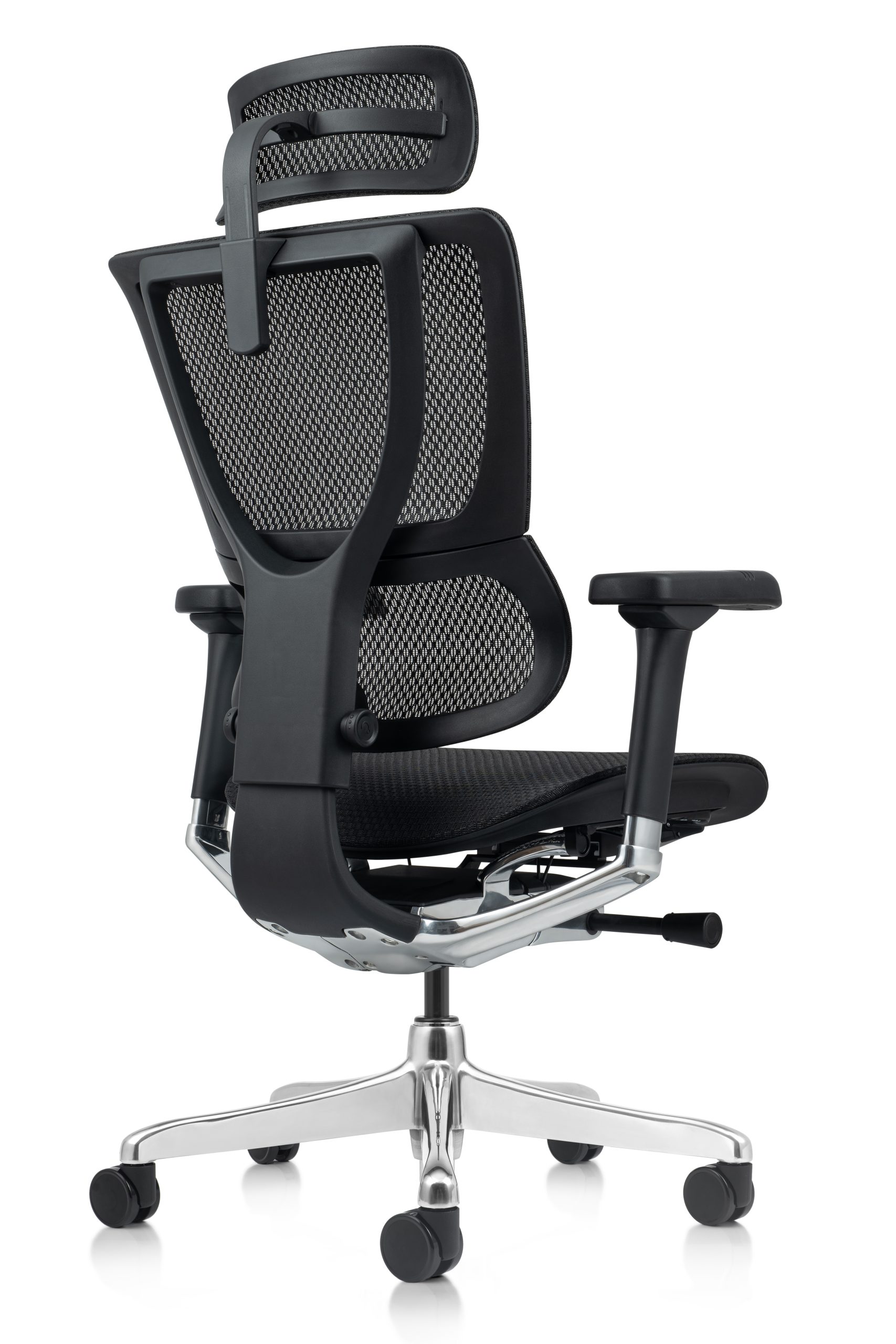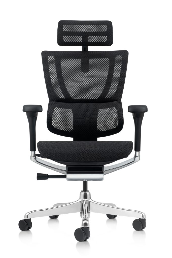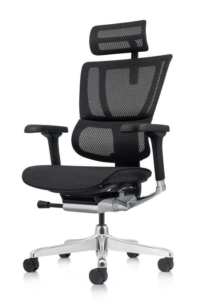 Der Premium-Chefsessel mit einer Tragkraft von bis zu 160 kg verbindet erstklassige Ergonomie mit maximaler Anpassungsfähigkeit. Die 3D-Kopfstütze aus Netzgewebe und das selbsttragende schwarze Netz sorgen für gute Belüftung und hohen Sitzkomfort. Die Rückenlehne mit dynamischer 3D-Lordosenstütze und vierfacher Höhenverstellung unterstützt eine gesunde Körperhaltung. Der Sitz ist in der Tiefe verstellbar und kann für aktives Sitzen nach vorne geneigt werden.
