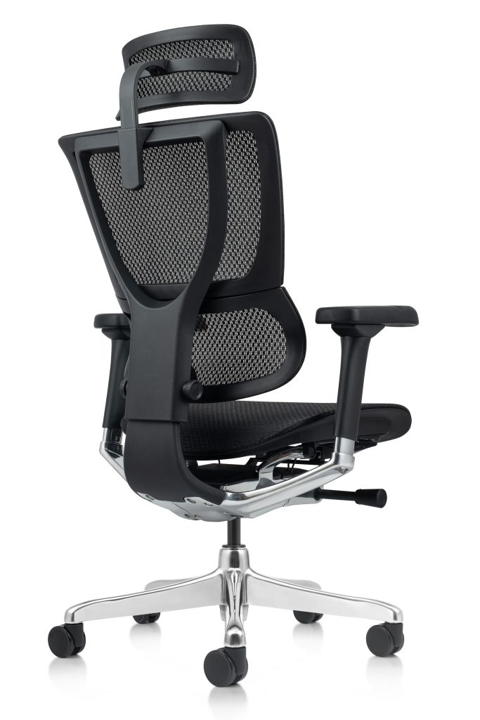 Die 3D-Netzkopfstütze und die selbsttragende schwarze Netzbespannung sorgen für Atmungsaktivität und ganztägigen Sitzkomfort