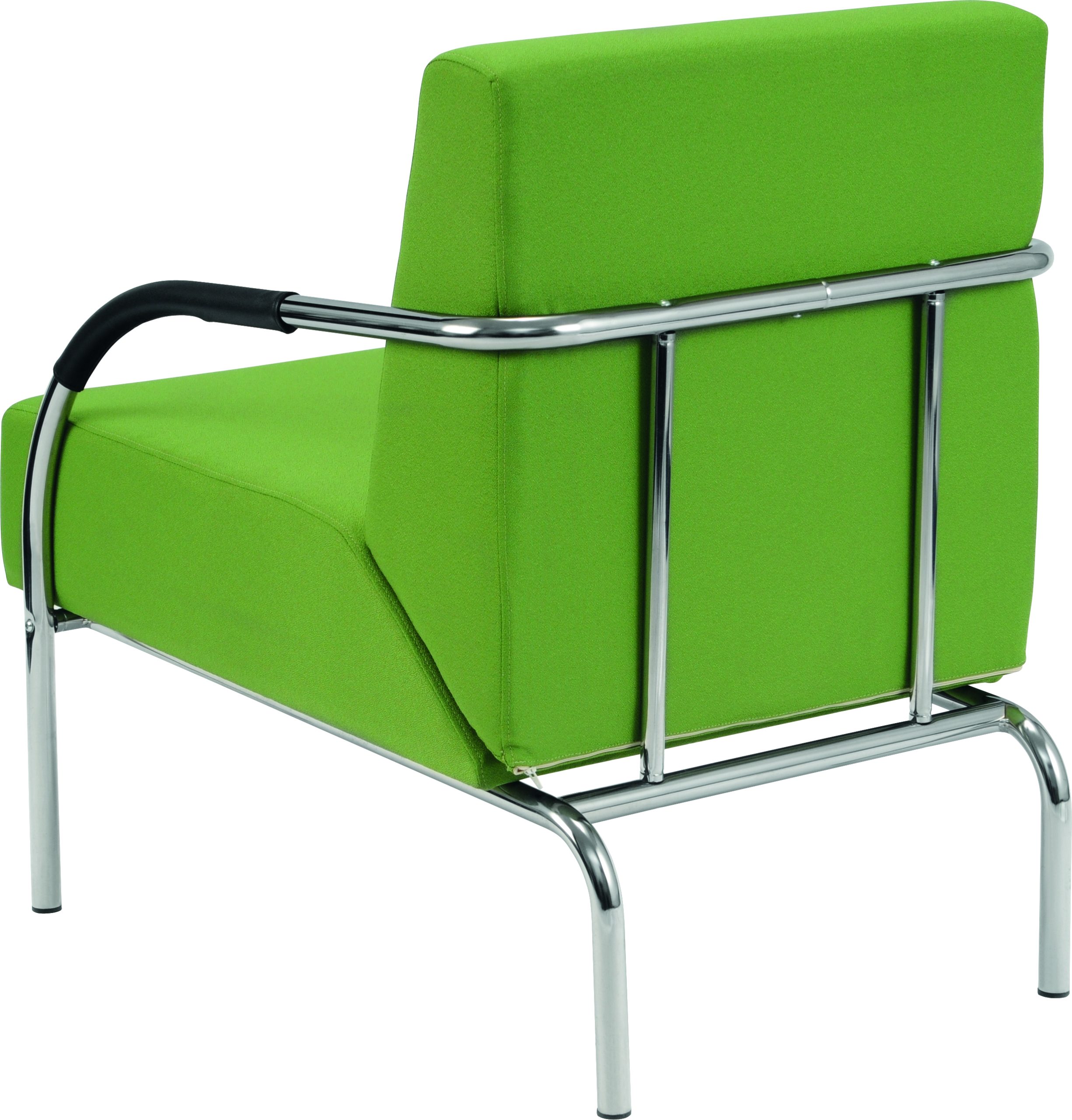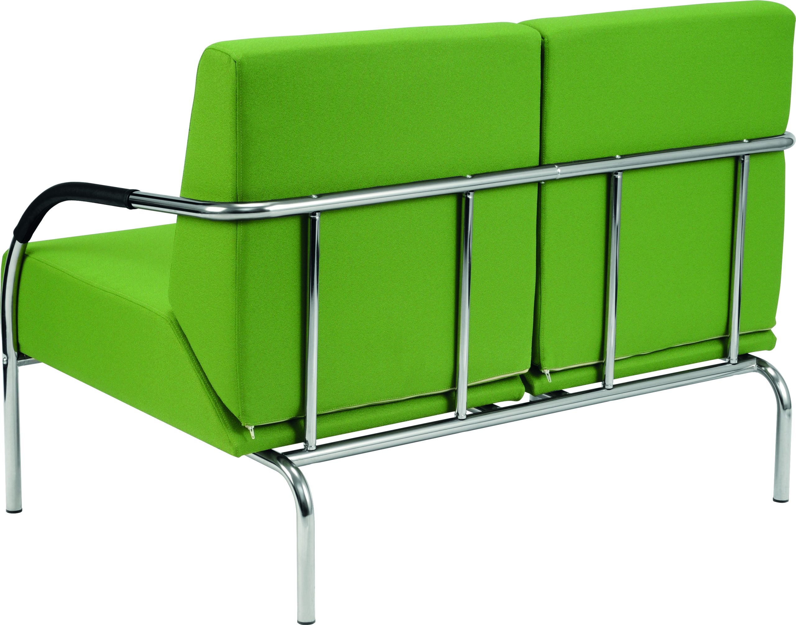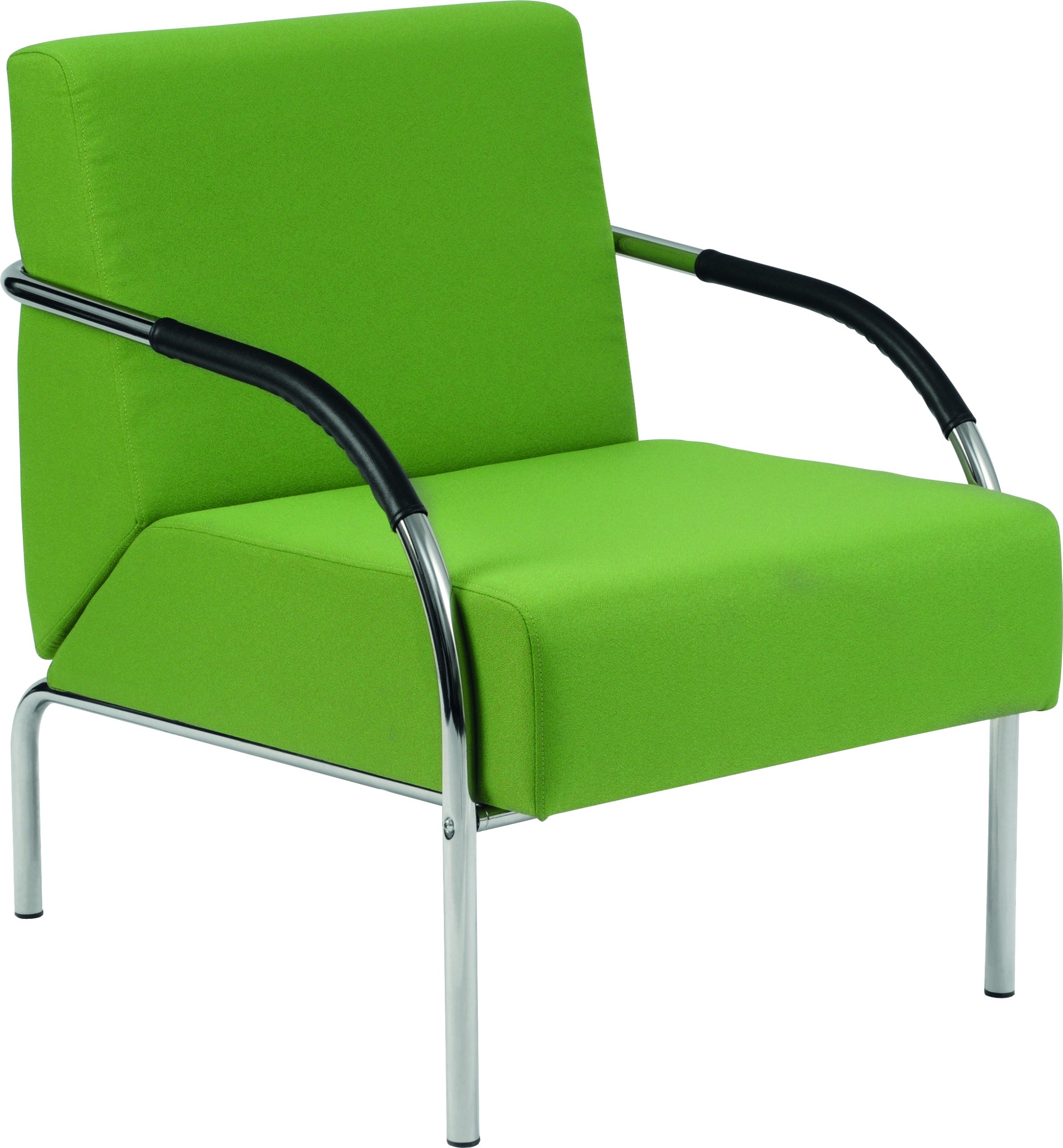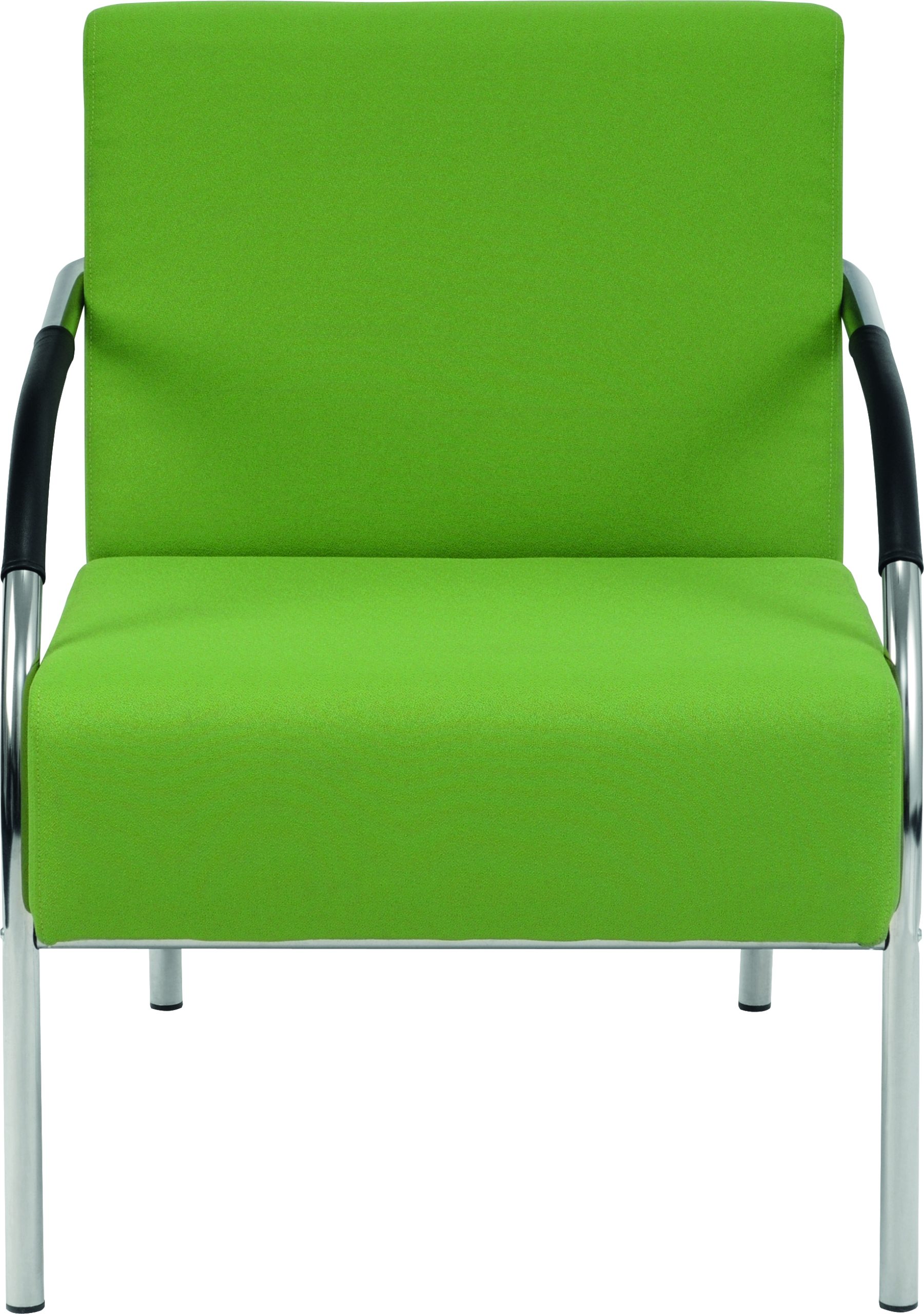 Vollgepolsterte Konferenzsessel mit stabilem, verschweißtem Gestell, verstärkter Rückenlehne und kunstlederbezogenen Armlehnen. Die Kombination aus Sessel, Zwei- und Dreisitzer ergibt eine komplette Sitzgruppe für Empfangsbereiche und Lounges.
