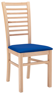 Designer wooden chair with upholstered seat and stylish backrest in various wood finishes and rich upholstery options.