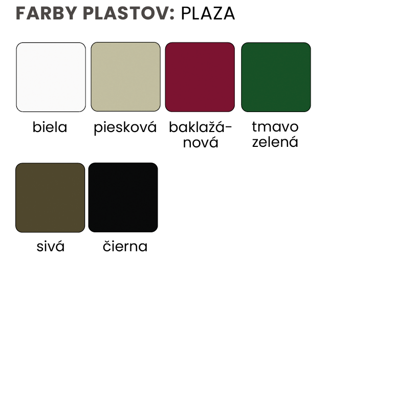 Séria PLAZA má množstvo rôznych certifikátov osvedčujúcich kvalitu, materiálové zloženie a ďalšie parametre. Požiadajte svojho predajcu o konkrétny certifikát, ktorý potrebujete.