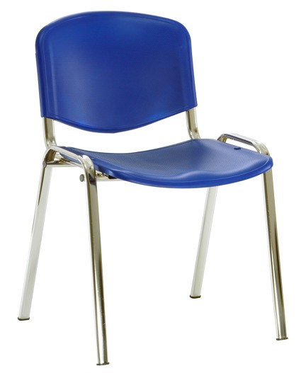 Klasická, úsporná, stohovateľná konferenčná stolička s pevným oceľovým rámom o sile 1,5 mm je ideálna pre konferenčné miestnosti, čakárne a zasadacie priestory. Plastový variant zo série IMPERIA má tmavomodré sedadlo aj operadlo. Konštrukcia stoličky je chrómovaná.
